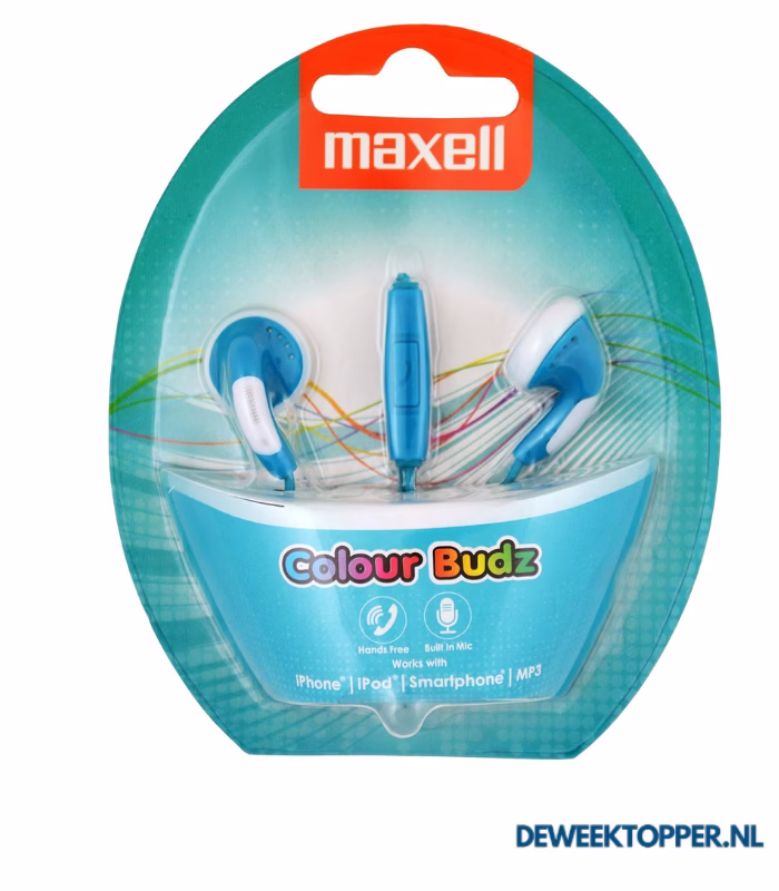Maxell 303751 hoofdtelefoon/headset In-ear Blauw, Wit